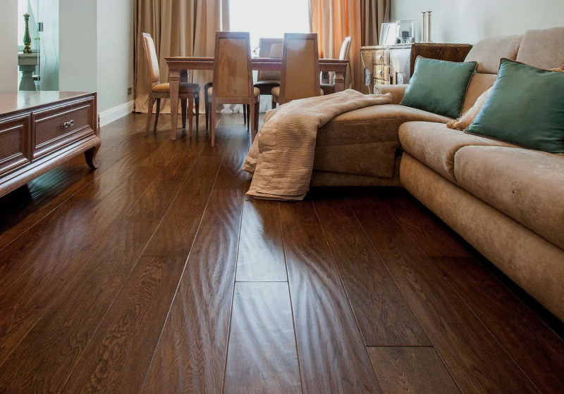 - Правильно выбирайте тип финишного покрытия. Классическими вариантами являются лак и масло. Первый более стойкий к механическим повреждениям, эффективно предотвращает образование на поверхности царапин, надежно предохраняет отделку от воздействия влаги. Масло же существенно глубже проникает внутрь древесины и длительное время позволяет сохранять тактильные ощущения «древесности» пола. При этом, для паркета с масляным финишным нанесением требуется более тщательный и бережный уход. Кроме того, время от времени покрытие маслом следует подновлять. Лаковая отделка проще в уходе.