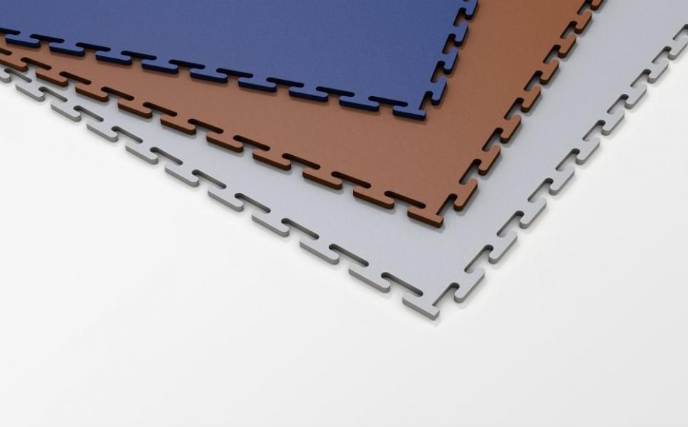 Плитка выпускается в широкой цветовой гамме, что позволяет выбрать нужный оттенок и обновить пол в офисе, спортзале или торговом зале. Кстати монтаж можно производить прямо на предыдущее покрытие.